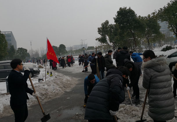 1月29日上午,園區(qū)內近300人參加鏟雪除冰保暢通活動。我公司黨委書記夏峰同志帶領公司五十多名員工,對公司大樓前環(huán)島及周邊道路進行掃雪除冰。由于天氣寒冷,路面全部結凍,給清掃工作帶來極大困難。大家分工明確,齊心合力,有的用鐵鍬破冰,有的用掃帚清掃積雪,干得熱火朝天。