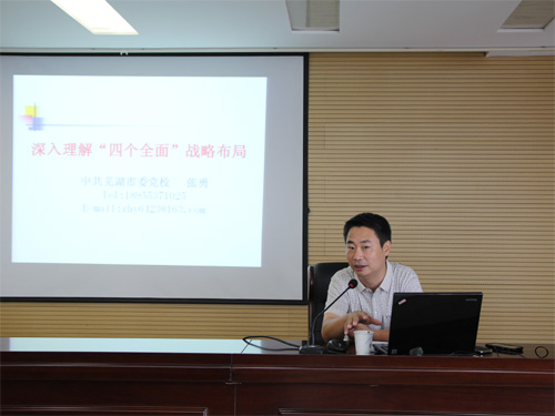 為進一步學(xué)習(xí)領(lǐng)會習(xí)近平總書記“四個全面”戰(zhàn)略布局的重要論述,8月22日上午,公司邀請市委黨校教育長、市委講師團副團長張勇教授為公司全體員工作了一場題為“深入理解四個全面戰(zhàn)略布局”的精彩報告。 張勇教授首先從執(zhí)政方略的高度梳理了“四個全面”的發(fā)展脈絡(luò),分析了四個全面的內(nèi)在邏輯。闡述了黨在新常態(tài)下的執(zhí)政思維和頂層設(shè)計,總結(jié)了中央領(lǐng)導(dǎo)集體的執(zhí)政風(fēng)格;其次指出全面建設(shè)小康社會是涵蓋經(jīng)濟、政治、文化、生活、建設(shè)兩型社會等多個方面,在分析世情、國情的基礎(chǔ)上,揭示了當前面臨的挑戰(zhàn)與機遇;最后深入分析了治國理政的三項基礎(chǔ)工程,即全面深化改革、全面依法治國、全面從嚴治黨。張勇教授語言生動,思維嚴謹,內(nèi)容既有理論的高度,又有實踐的深度,既有全面的總結(jié),又有細致的分析。 通過此次報告會,公司全體員工深入理解了“四個全面”戰(zhàn)略布局的意義、內(nèi)涵和舉措,更加堅定了實現(xiàn)偉大復(fù)興中國夢的決心和信心。 |