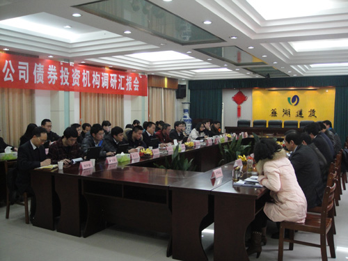 3月16日,公司邀請全國證券、基金、保險、銀行等23家金融機構對我市和公司進行了實地調研。市政府副秘書長張東出席了調研座談會。市發(fā)改委和公司負責同志分別向機構投資者介紹了蕪湖市經濟社會發(fā)展情況和“十二五”發(fā)展規(guī)劃、蕪湖建投發(fā)展歷程及投融資情況,并就機構投資者關心的問題一一作出解答。
